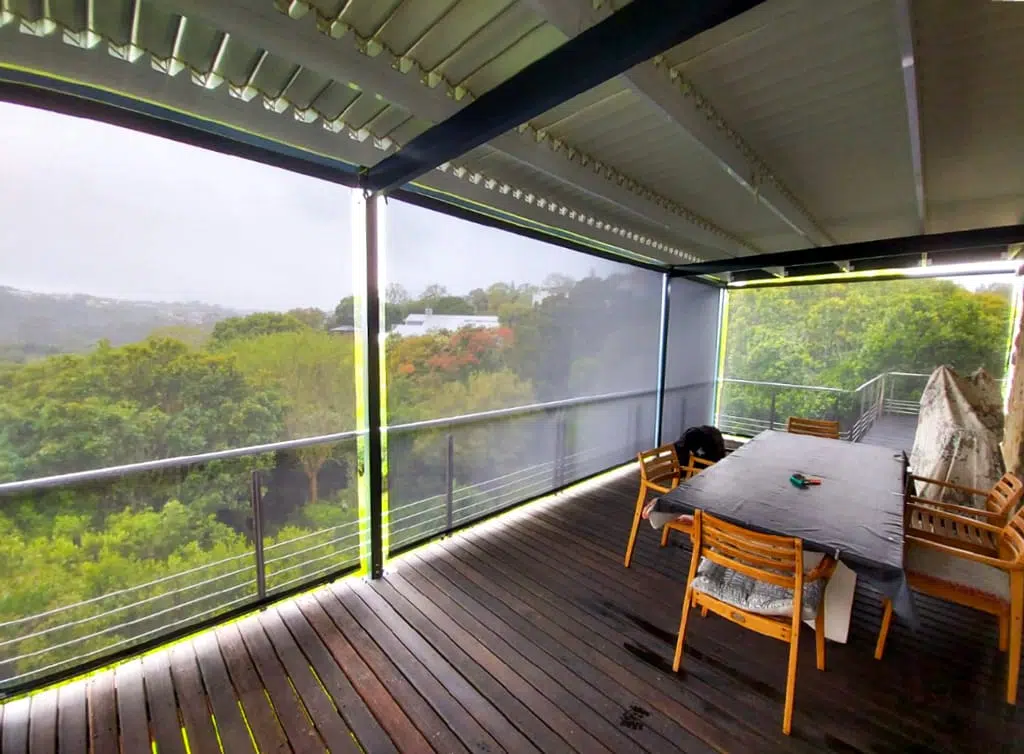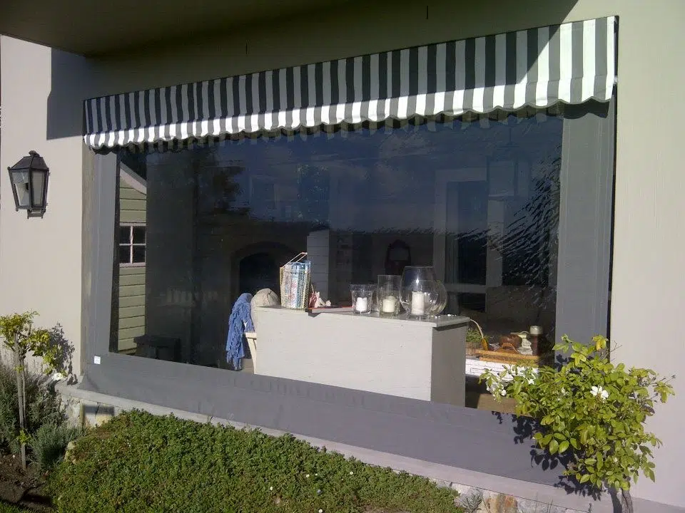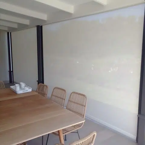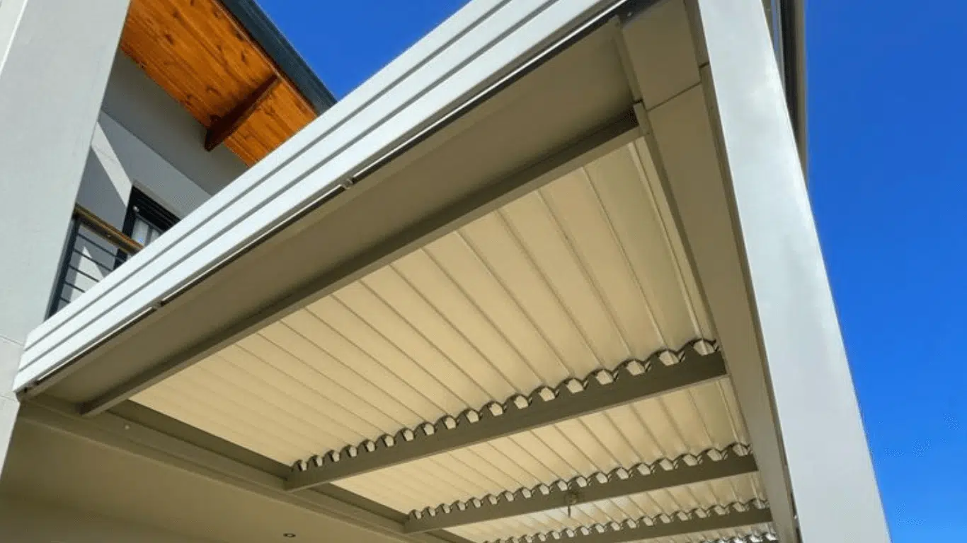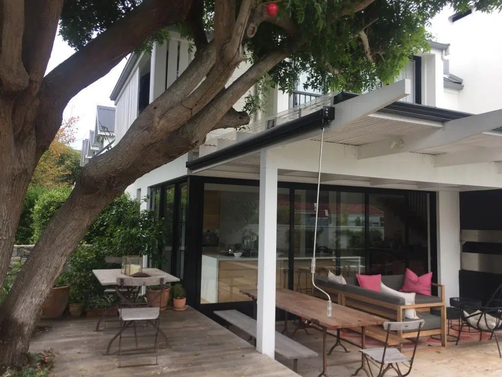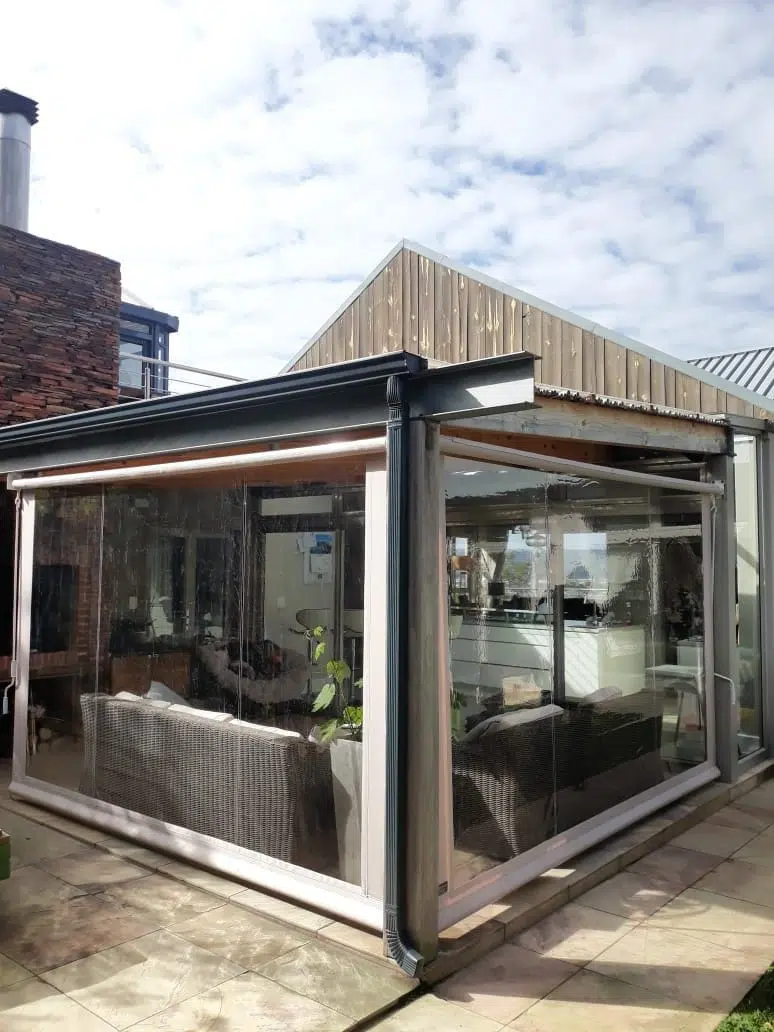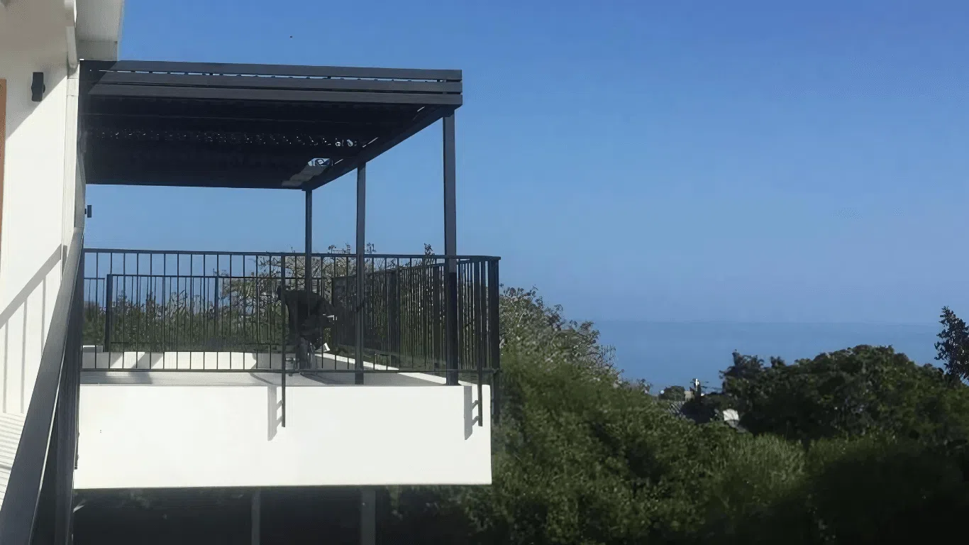 The Custom Blinds® Portfolio of Installations. This is a louverd awning with a customised colour application to better blend in with the Simola home and surroundings. Sunworker Outdoor Drop Down Blinds Portfolio. Outdoor Weather Blinds Portfolio Retractable Awnings Portfolio