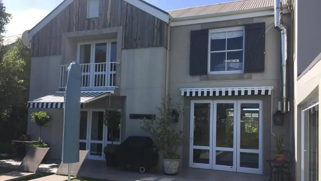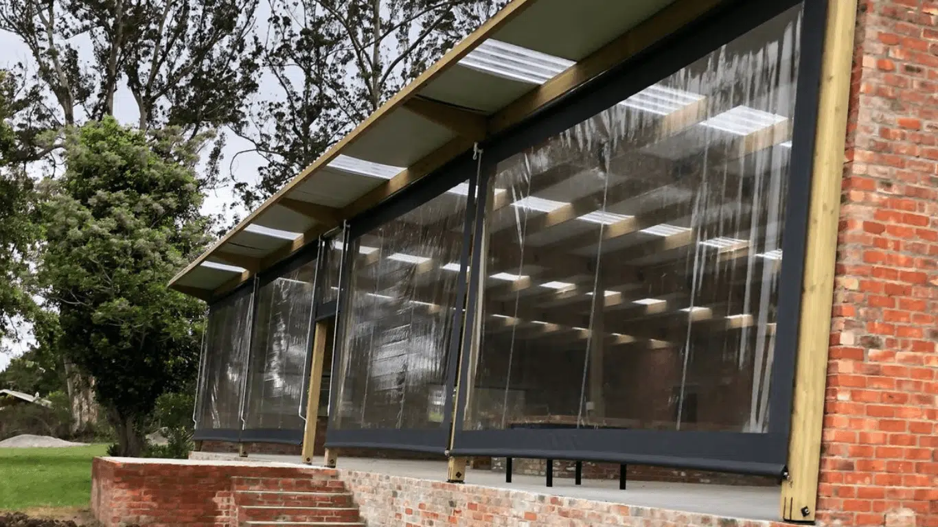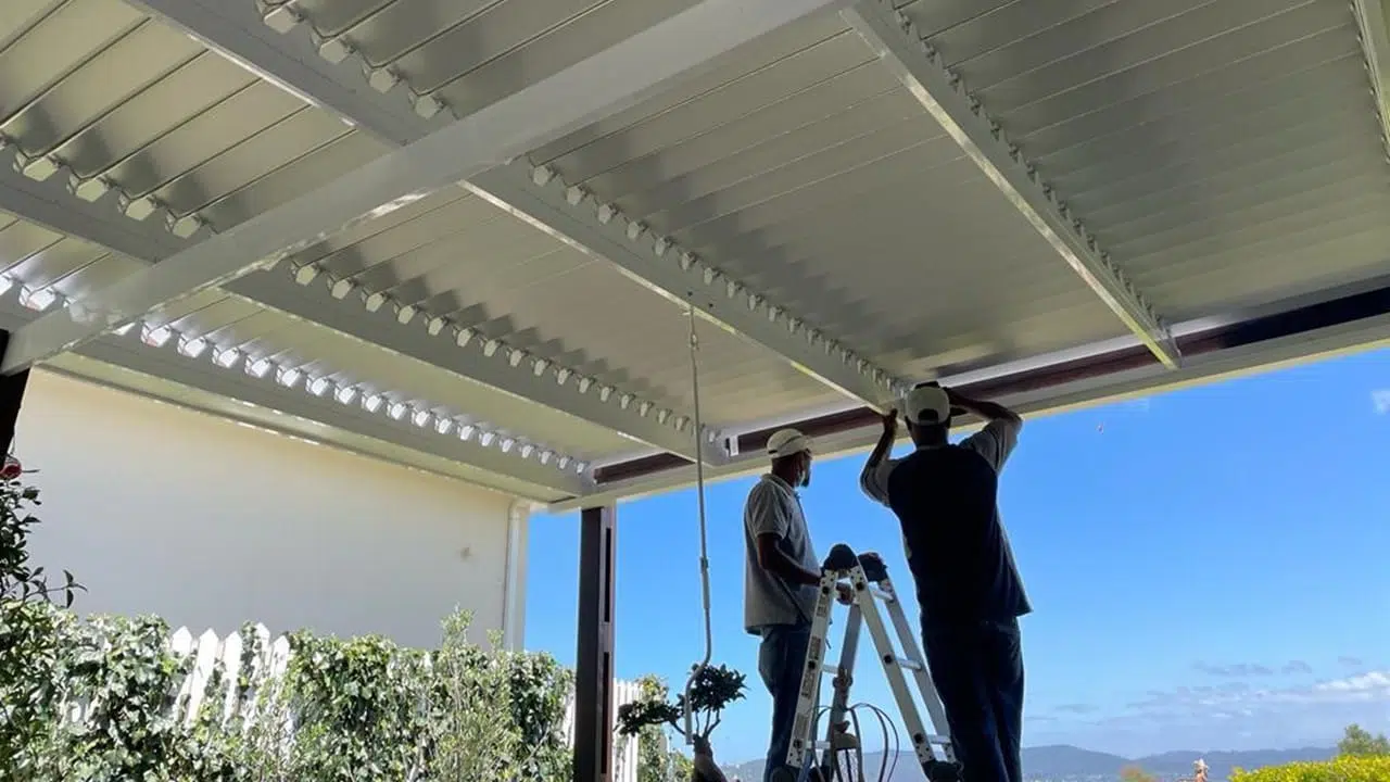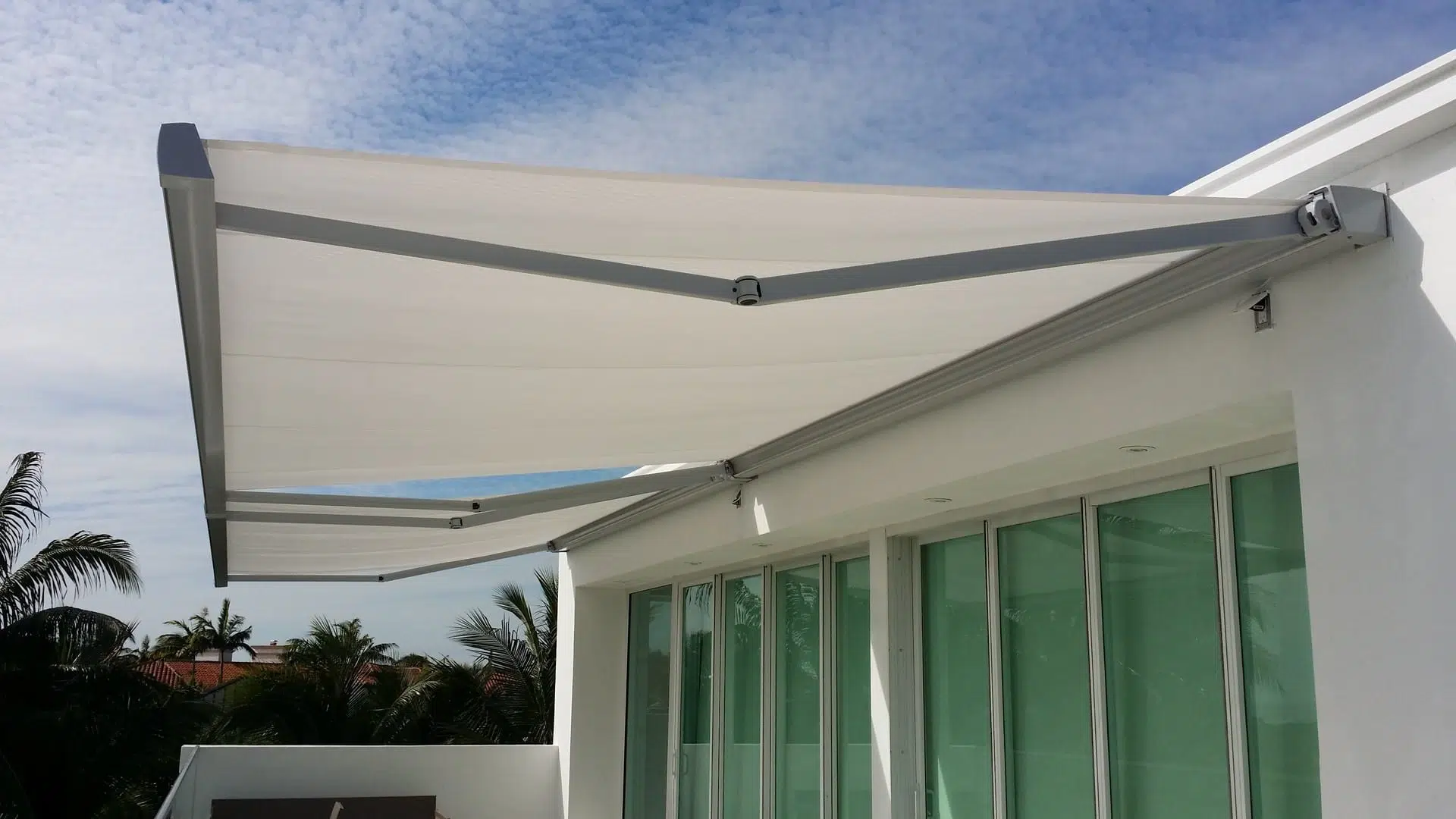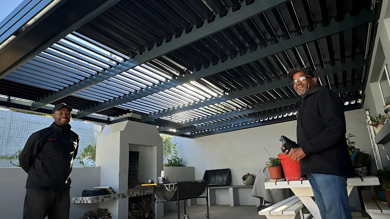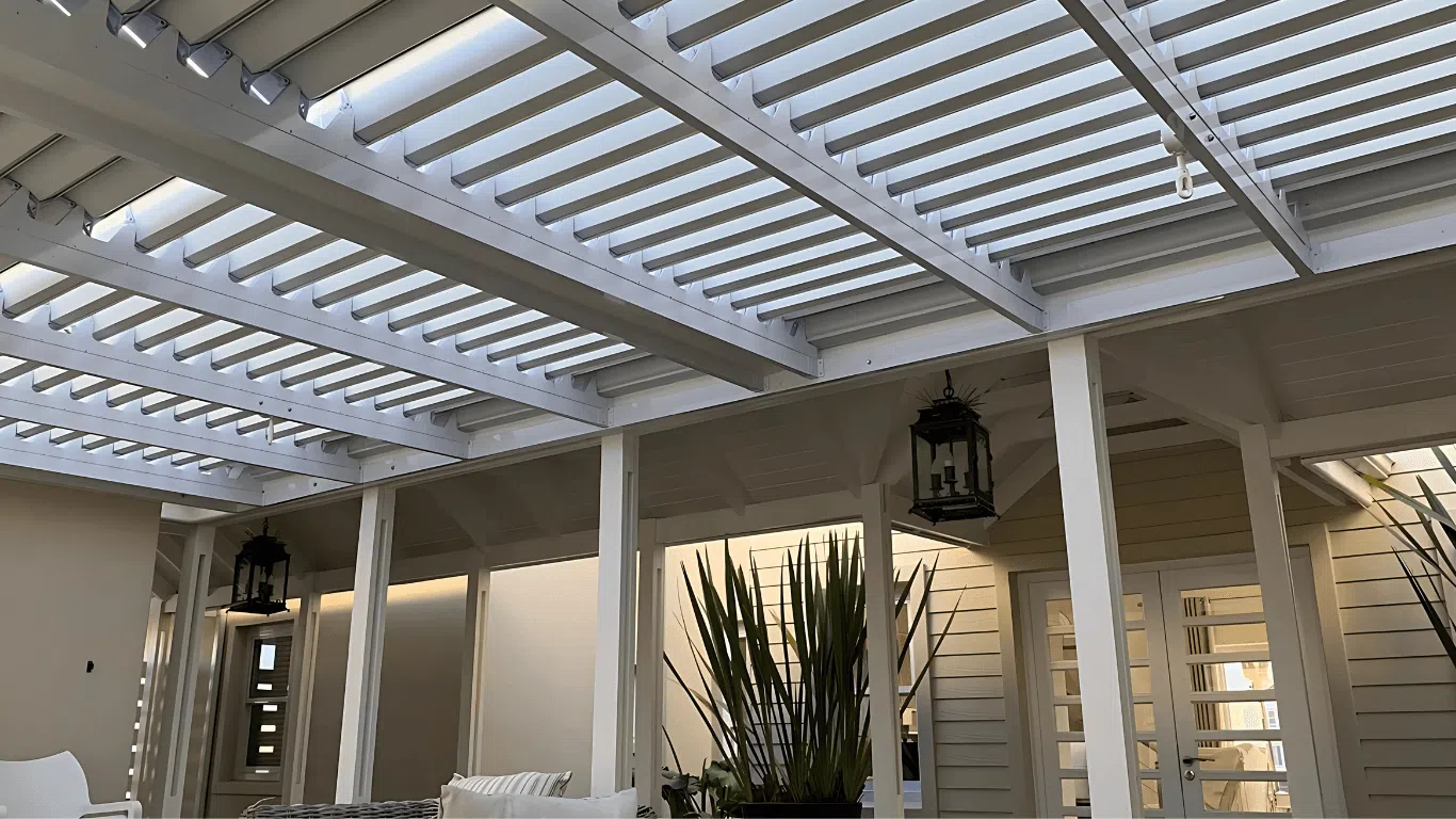 The Custom Blinds® Portfolio of Installations. This is a louverd awning with a customised colour application to better blend in with the Simola home and surroundings. Sunworker Outdoor Drop Down Blinds Portfolio. Outdoor Weather Blinds Portfolio Retractable Awnings Portfolio
