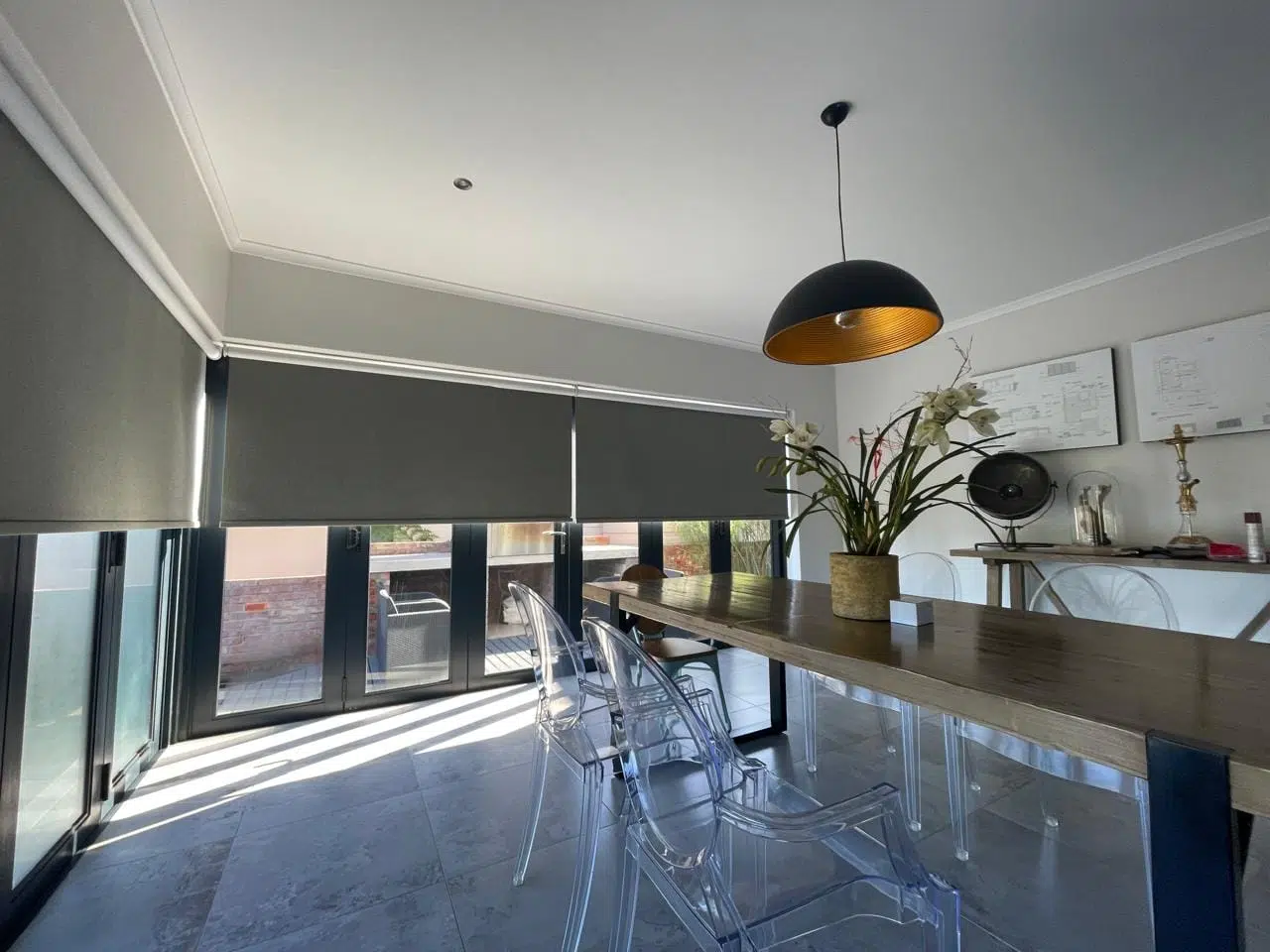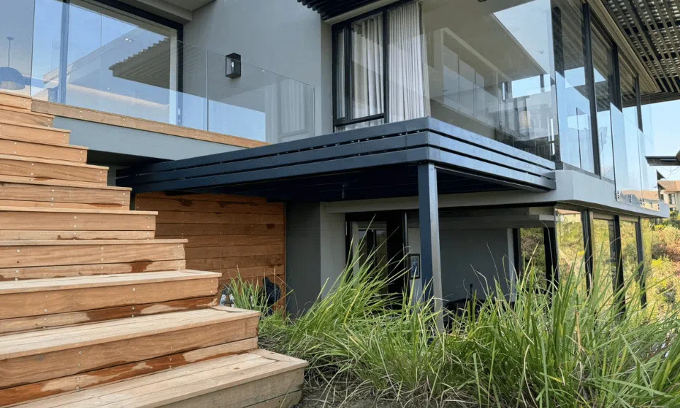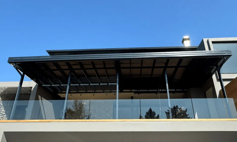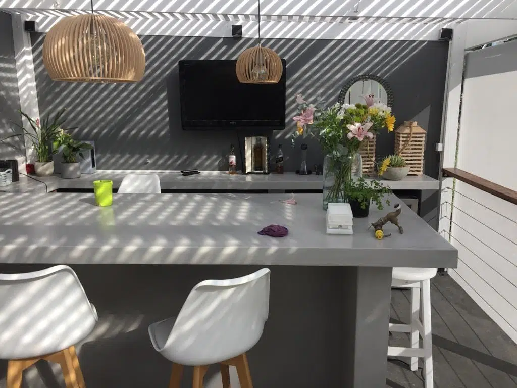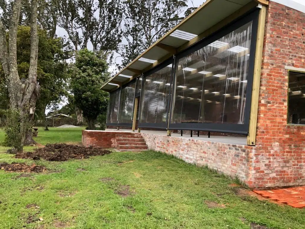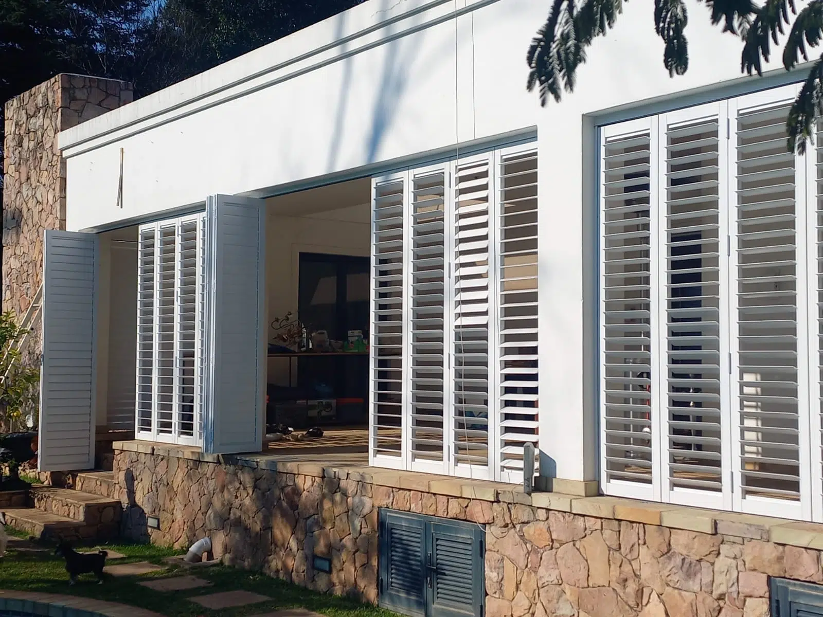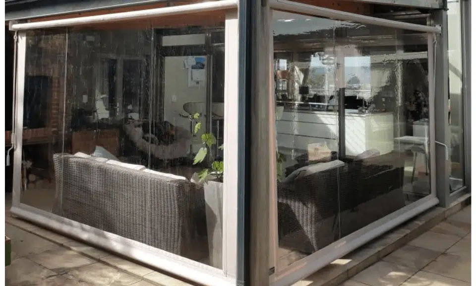 The Custom Blinds® Portfolio of Installations. This is a louverd awning with a customised colour application to better blend in with the Simola home and surroundings. Sunworker Outdoor Drop Down Blinds Portfolio. Outdoor Weather Blinds Portfolio Retractable Awnings Portfolio