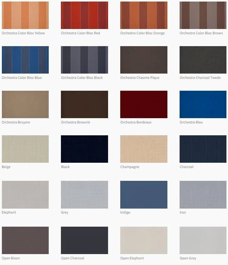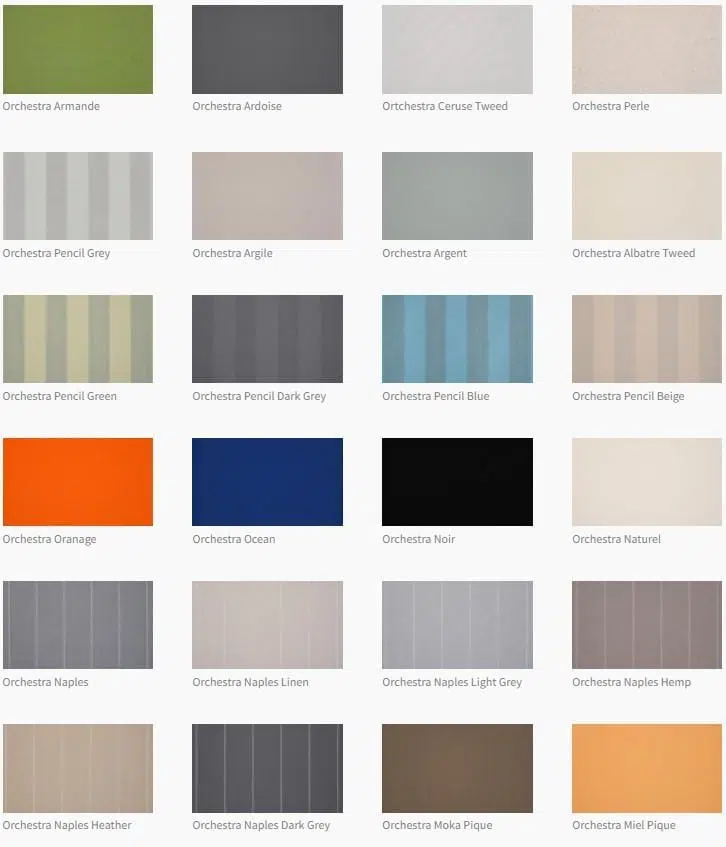 You can select from two main configurations. The open roll version is cost effective and perfect for shaded areas or where the mechanism is already protected by eaves. The full cassette version encloses the fabric and arms completely when retracted, giving the system a minimal modern appearance and maximum protection. Both options are available in a range of fabric patterns and frame colours to blend seamlessly with your home.